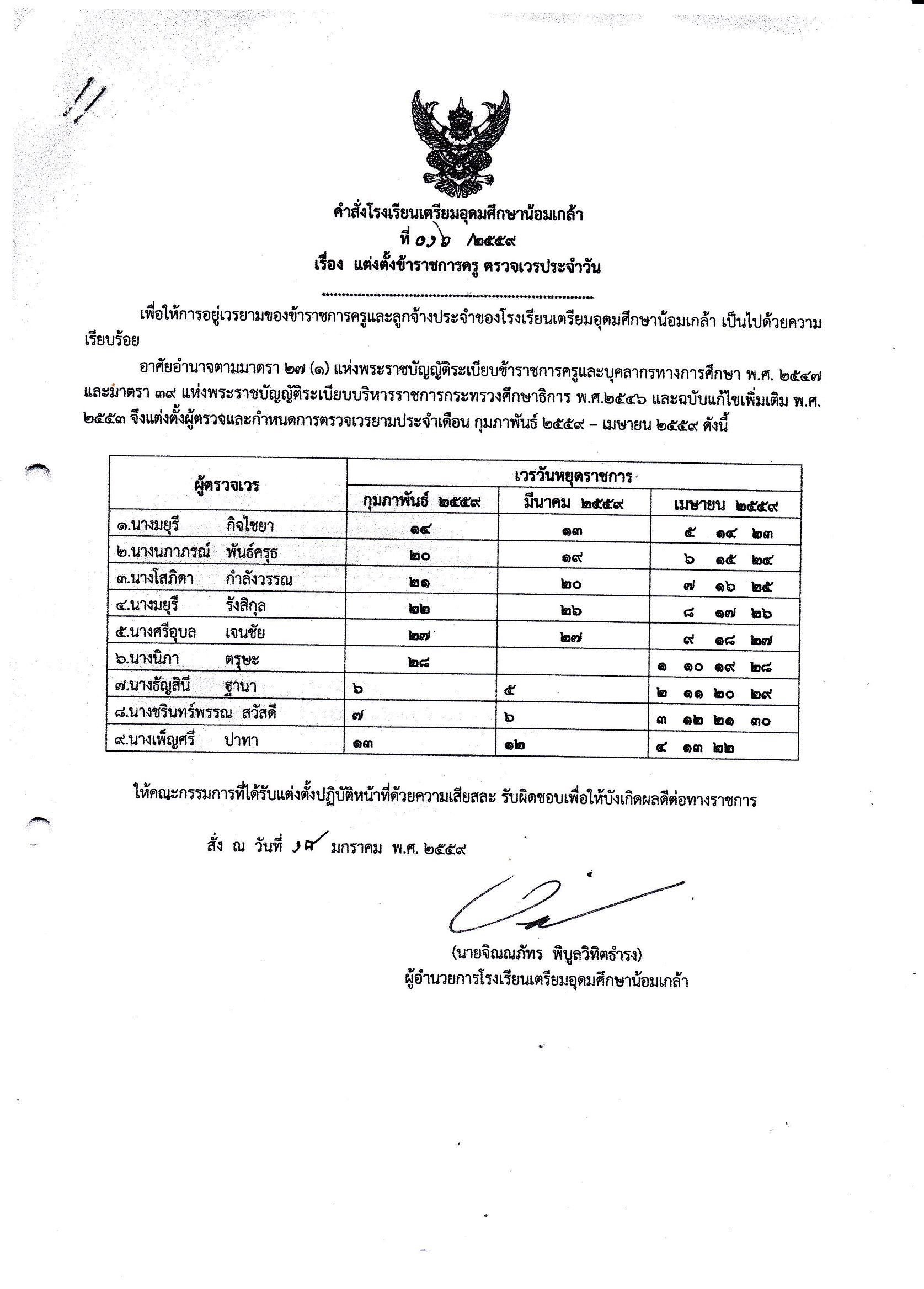คำสั่งปฏิบัติหน้าที่อยู่เวร